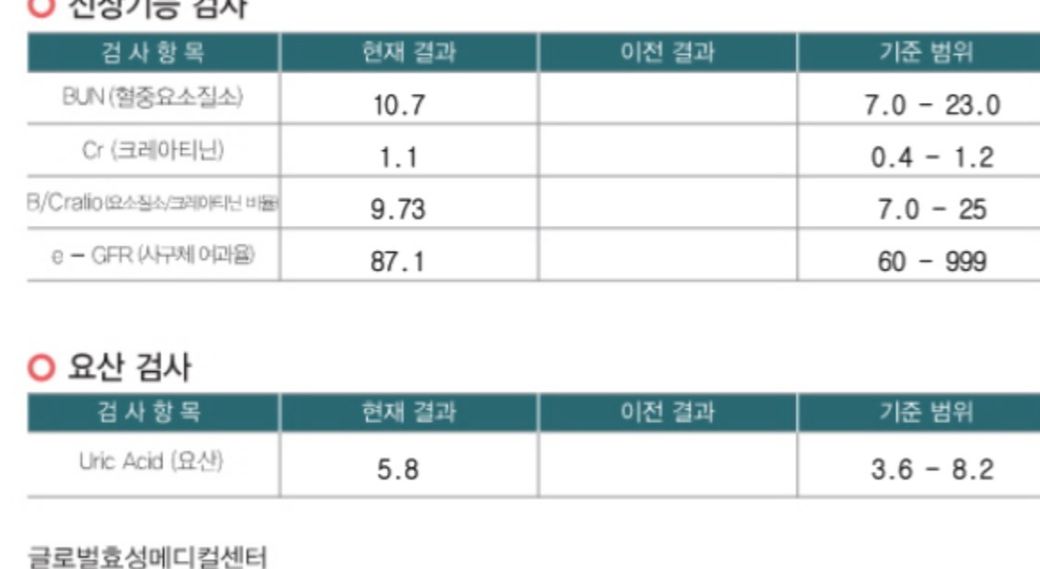사구체 여과율이 나이에 비해서 조금 떨어지기는 하지만 병적으로 떨어지는건 아니기 때문에 이것도 문제가 되지 않습니다.