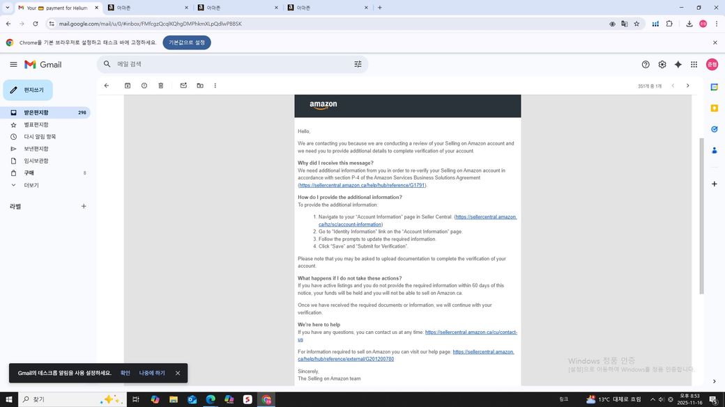 아마존 셀러센트럴 계정 비활성화 해결방법