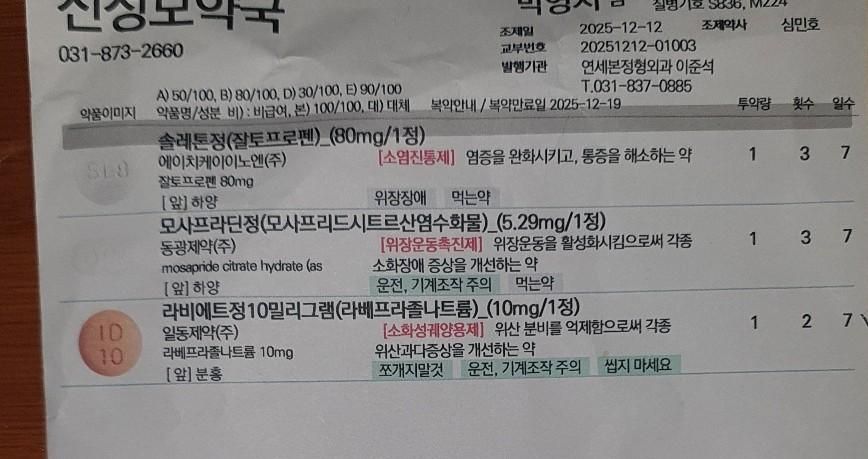 보통 소염진통제,진통제,위장약 이렇게 처방해주잔아요
