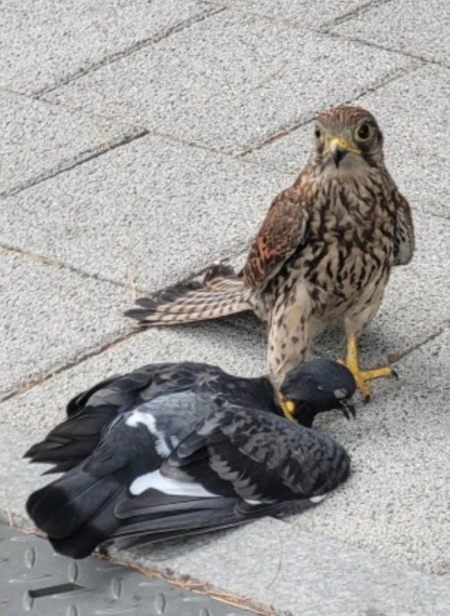 황조롱이는 어떻게 도시에서도 자기 몸보다 큰 비둘기를 제압하게 되었나요?