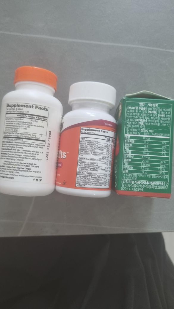 39세 남자이고, 위의 세가지 영양제 복용중인데 커큐민과는 겹치는 영양성분 없을듯 한데 나우 멀티비타민과 혈강건강바나바리프 중복되는 성분 없는지 함께 복용해도 되는지 궁금합니다.