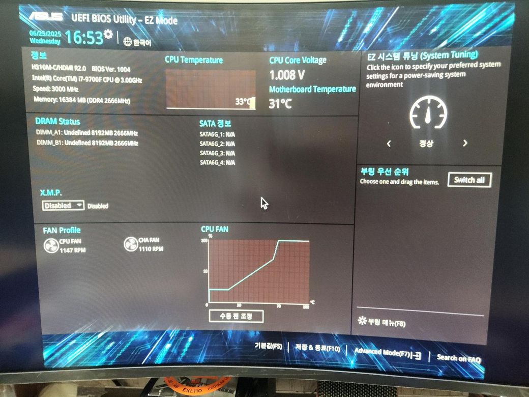 정전 된 이후 컴퓨터 부팅 시 BIOS 화면만 나오는데 SSD가 고장난 것일까요