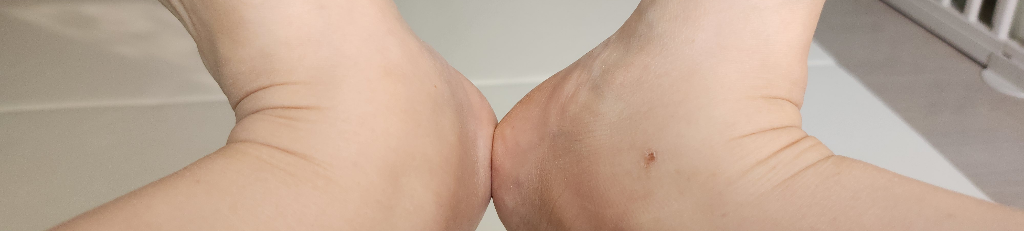 아기들의 경우 아직 성장이 완전히 이루어진 상태가 아니기 때문에 접촉 면적 등에 따라 발목의 주름이 약간씩 다를 수 있습니다. 또한 이런부분이 성인까지 이어진다 하더라도 건강에는 이상이 없는 부분이니 크게 걱정하지 않으셔도 될 것으로 보입니다.