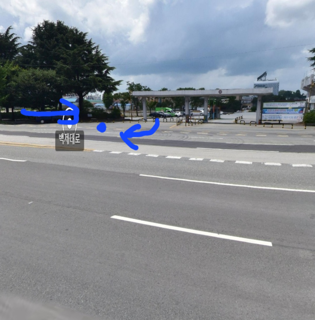 좌회전은 불가능하고 우회전만 가능하며 인도는 없었습니다.