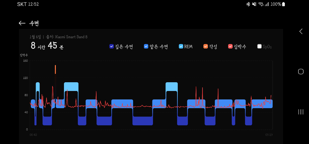 수면중에 REM 수면기에 꿈을 꾸다가 악몽을 꾼다거나 긴장을 하게되면 심박수가 올라갈 수 있습니다.