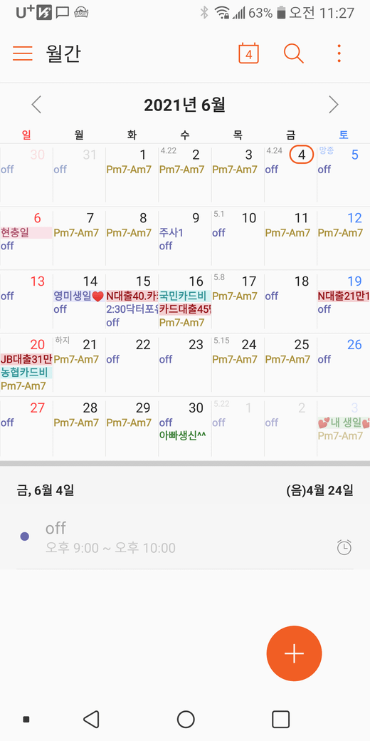 (밑에사진은 스케줄표달력에적어놓음)