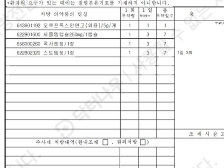 아래 처방전에 대한 약은 식후즉시 복용해야합니다.