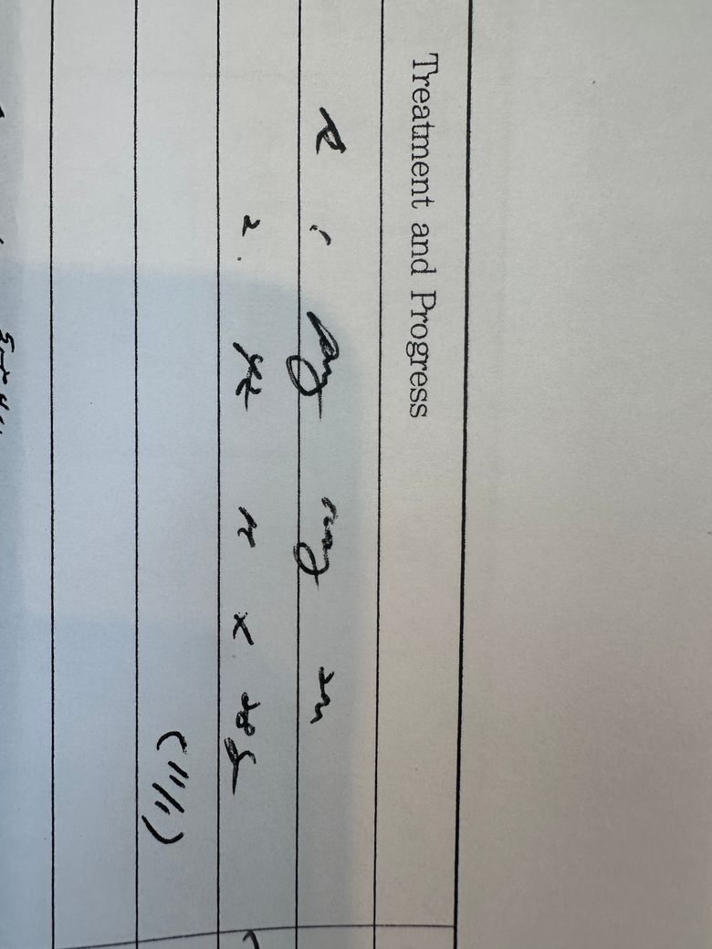 사진으로 올리신 진료 차트는 수기로 작성된 것으로 보이는데, 너무 날려 썼기 때문에 무어라 쓰여있는지 자체가 식별이 잘 되지 않습니다. 차트를 발급해주신 병원에 가서 차트를 작성하신 선생님에게 문의를 해보시는 것이 필요할 것으로 사료됩니다. 글씨를 전혀 알아보지 못하겠습니다.