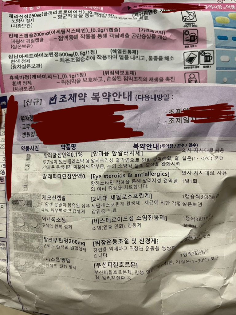 케모신캡슐/헤라신정 중 하나만 드시길 바라며, 원래 드시고 있던 항생제만 드시길 바랍니다.