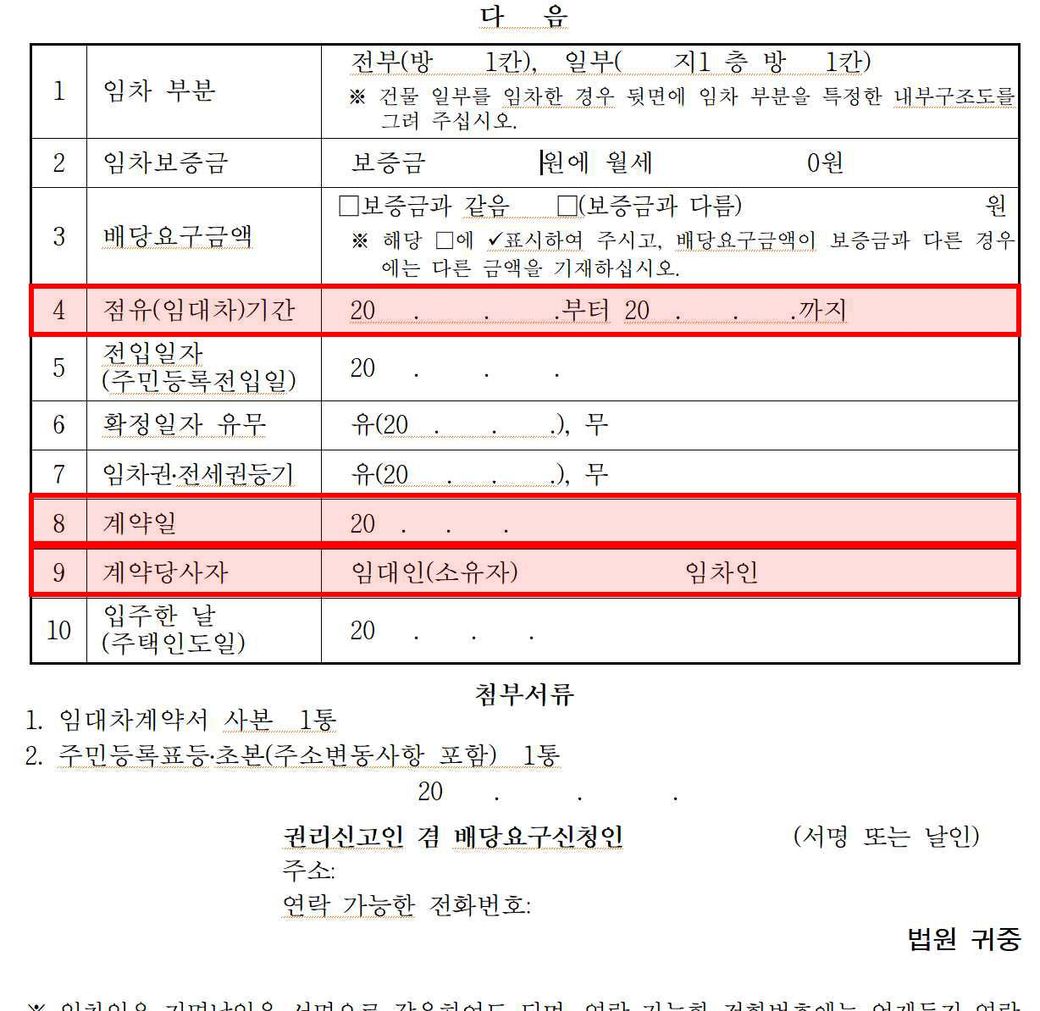 배당요구신청서 몇가지 질문이있습니다.