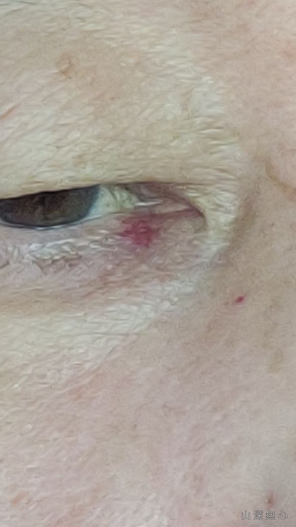 단순 발적으로 보입니다. 눈을 비비거나 하면 발생할수있습니다.