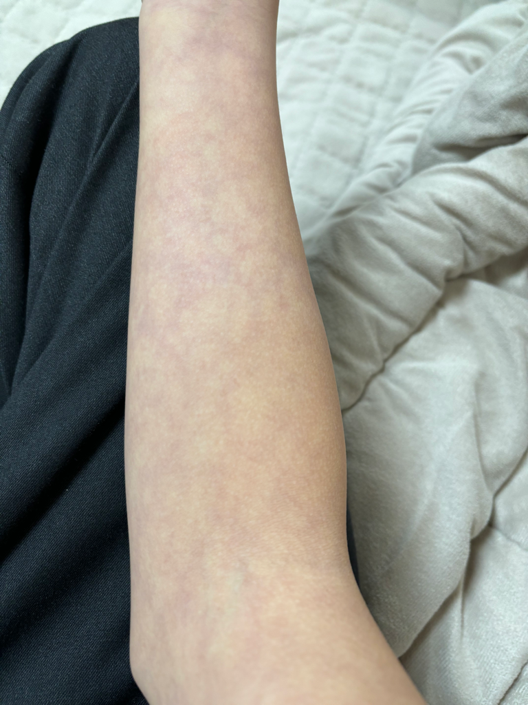 혹시 열감이 있거나 그러면 피부질환중 하나인 알레르기 반응일수도 있으니