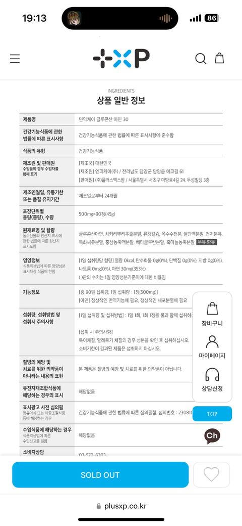 면역케어 글루콘산 아연 30 유당불내증