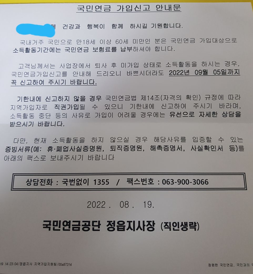 집에서 지내고 있는데 국민연금공단에서 우편물이 와서 열어보니 첨부한 내용과 같이 안내문이 왔는데,