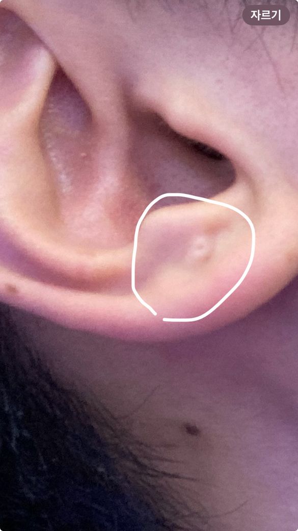 언제부터인지 모르겠지만 귓볼 근처에 뭐가 있길래 문득 거울을 봤더니 저렇게 가운데 구멍이 살짝 뚫려있고 피부색이랑 비슷한데 똥그란 무언가가 나 있습니다.