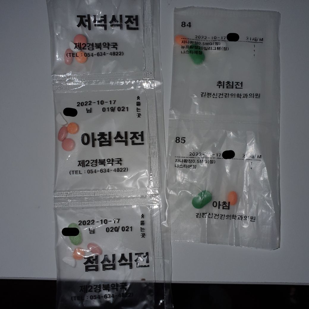 왼쪽이 내과에서 받은 약 / 오른쪽은 정신과에서 복용중인 약