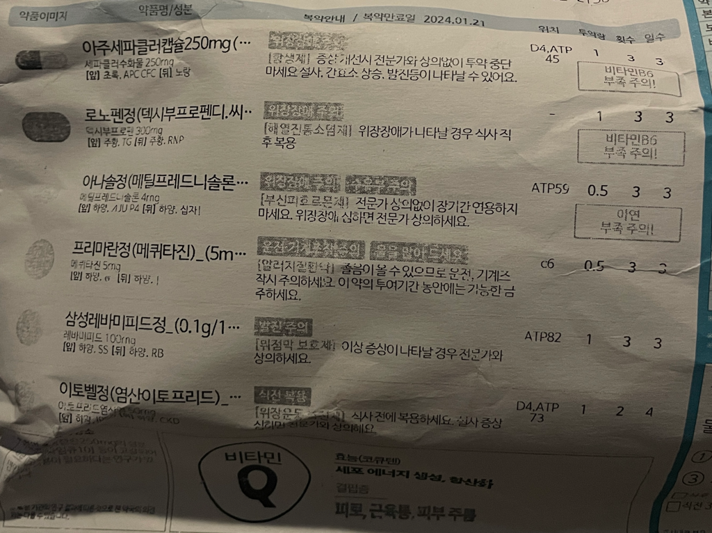 또한 항히스타민제를 복용하셨기에 수분 섭취를 늘려주시길 바랍니다.