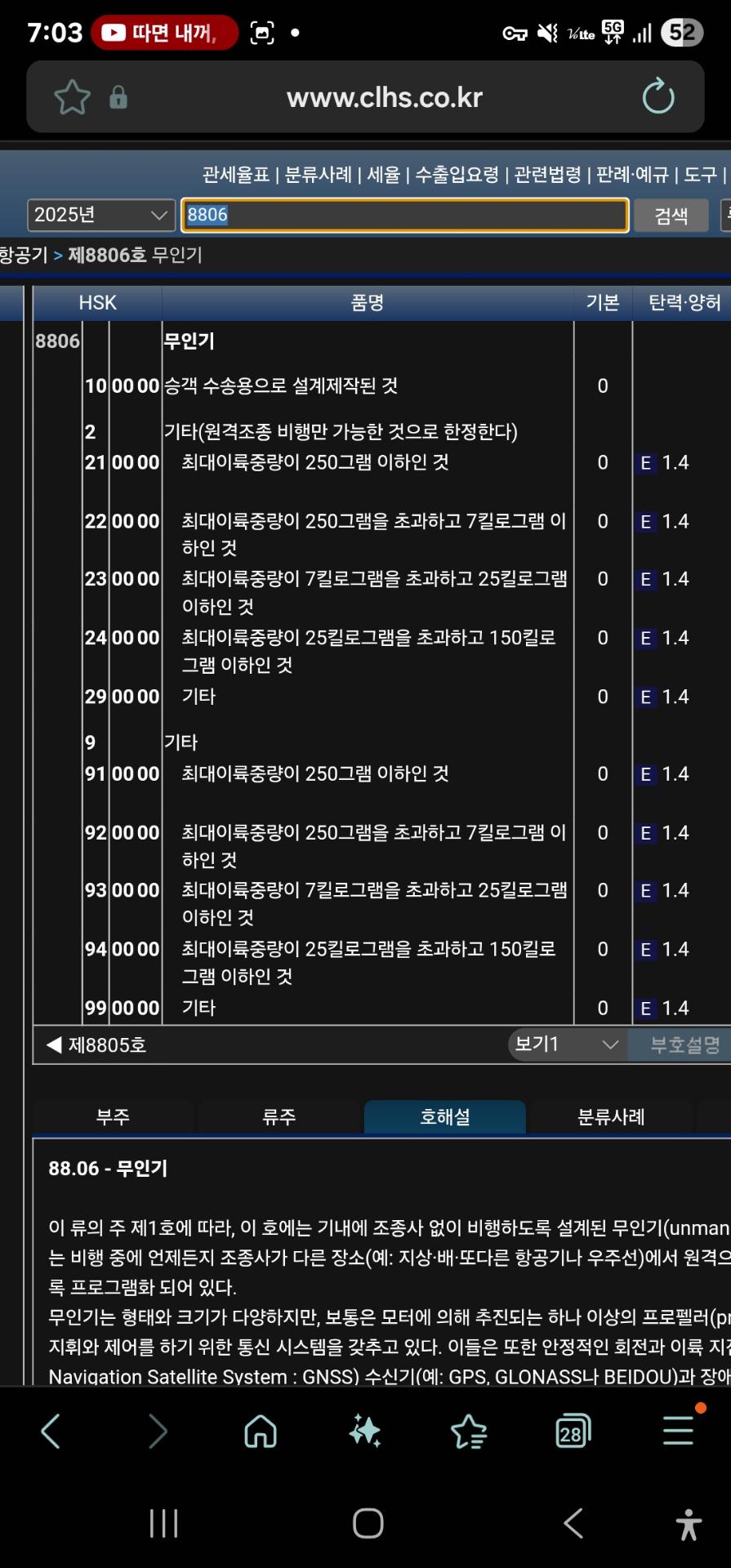 근데 명확한 기재가 되지 않았다면 8806.99에 해당한다는 말이 있어 무엇이 맞는지 궁금합니다.