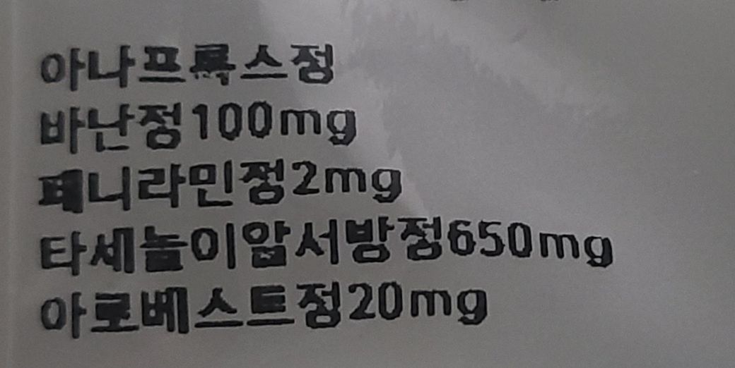 현재 복용 약은 아나프록스정(나프록센), 바난(세프포독심), 페니라민정(클로르페니라민),