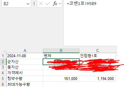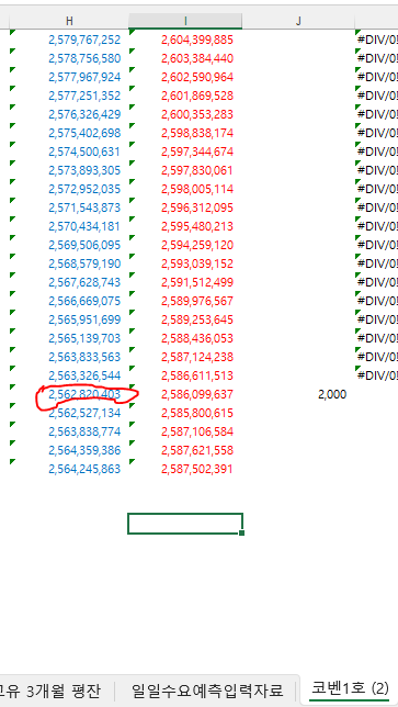 1번 사진에서 빨간색으로 가려놓은 수치를 클릭 후 위에 함수 보시면 코벤1호 시트라는 곳에서 !H589 로 되어있고 H열 589 값을 불러오게끔 되어있습니다.