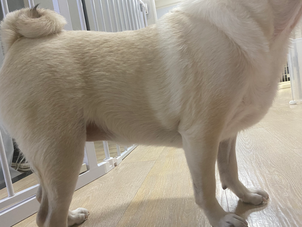 체중이 많이 나가도 이렇게 배가 나올 수도 있습니다. 특히 퍼그 같이 식탐이 강한 강아지들은 그런 증상이 나타나기도 하죠