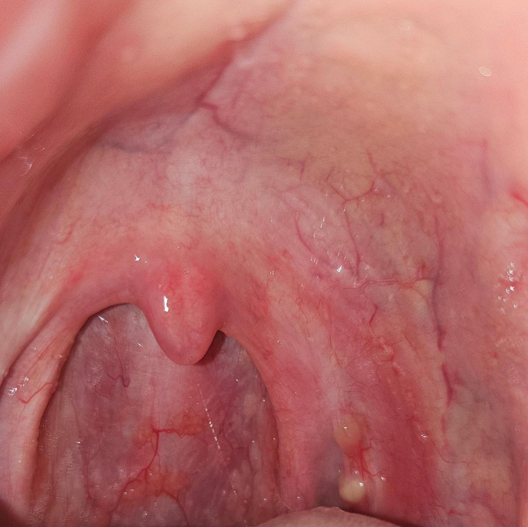 안타깝지만 해당 사진 소견만 놓고 정확한 상태 파악 및 감별 진단을 내릴 수는 없습니다. 일시적으로 생겼을 수 있겠으나 지속된다면 이비인후과 내원하여 진료 받아보시길 권유드립니다.