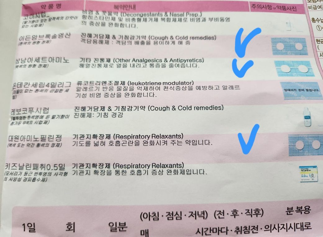 사정상 입원은 못 하고 약만 처방 받아 왔는데 시럽2개와 3가지 약을 가루로 하여 한봉지에 다 넣어 주셨는데 가루약에 해열제가 들어가 있더라구요.