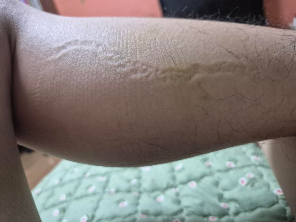 사진은 지금 종아리 상태입니다 보호대 벗은지 얼마안되서 자국이 좀있습니다