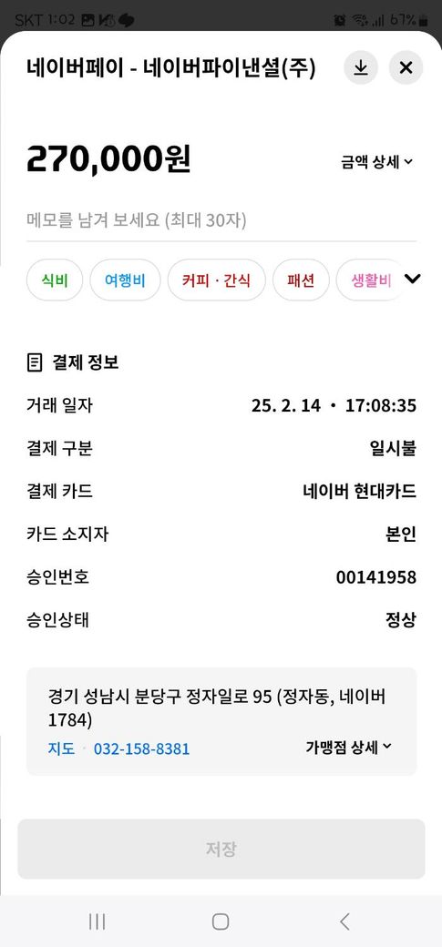 카드사 홈페이지 카드사용내역에는 카드 사용처가 (주)네이버페이로만 떠서 이게 해외인지 국내인지 등은 알 수 없게 나옵니다