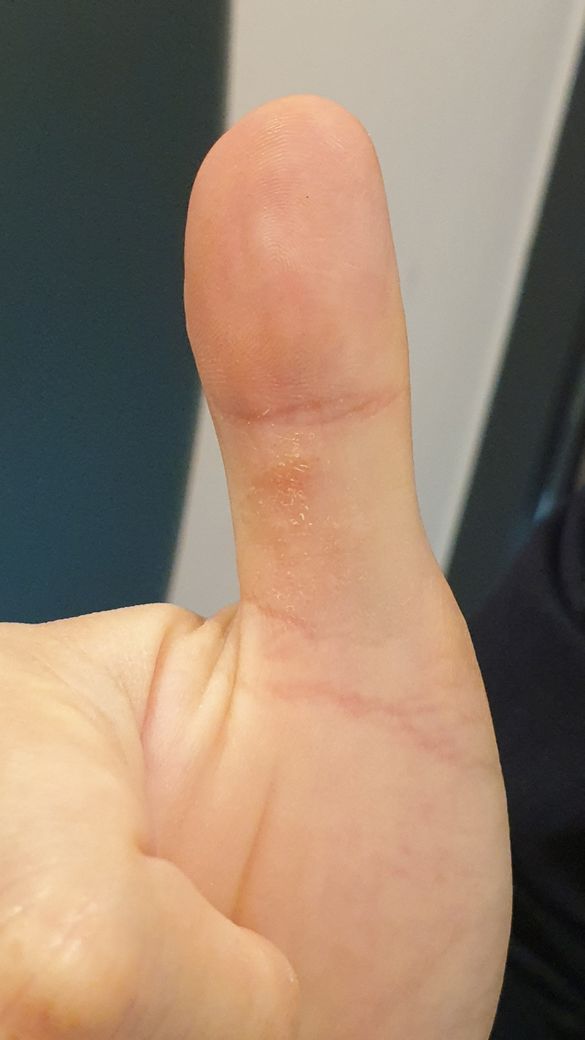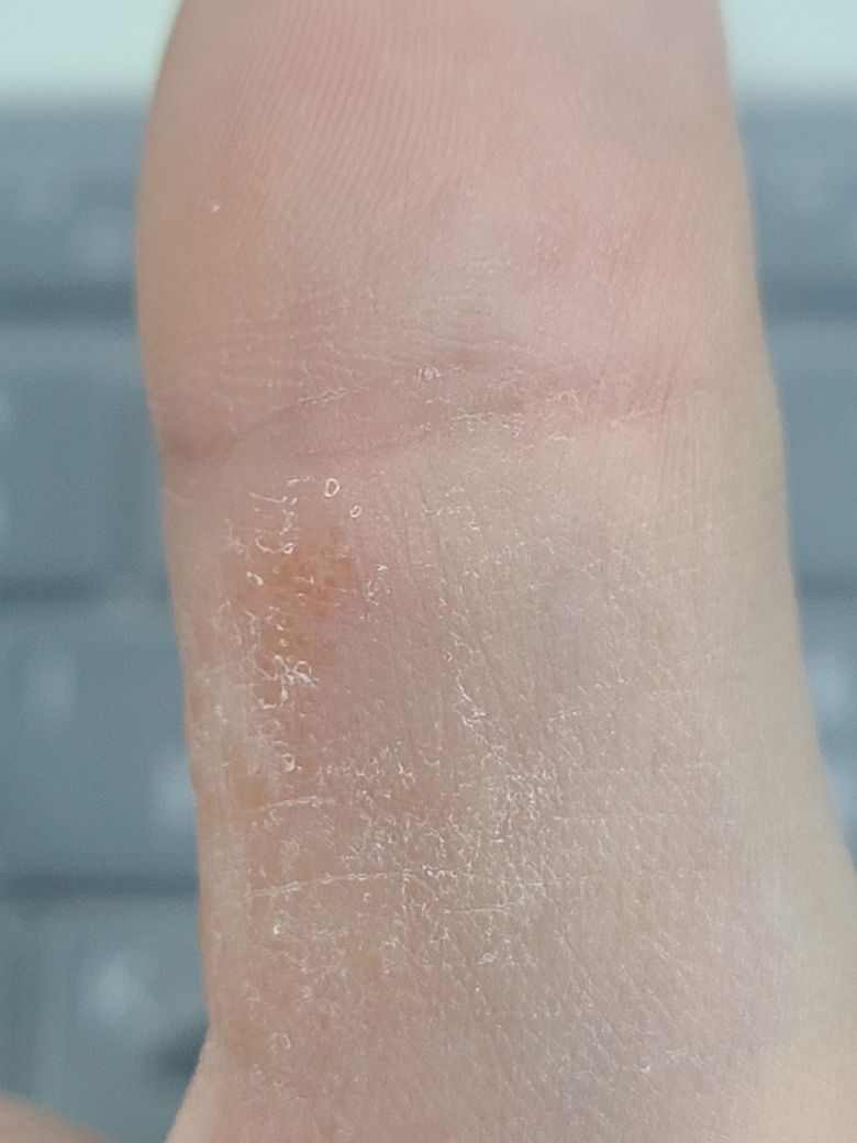 이제는 엄지손가락에 사진과 같이 수포가올라오면서 가렵고 하얗게 일어나는 질환이 생겼는데