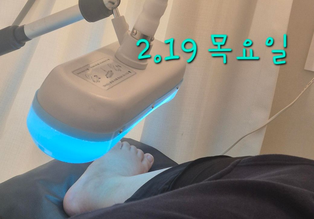 온찜질, 맨소래담. 찜질하거나 약 바를 때와 씻을 때 말고는 캐스트슈즈 착용. 슈즈 없을 때에도 걸을 때 통증이나 붓기는 없는데 여전히 피멍이 있음. 슈즈와 닿는 발목 뒷 부분에도 노란 멍이 들음.