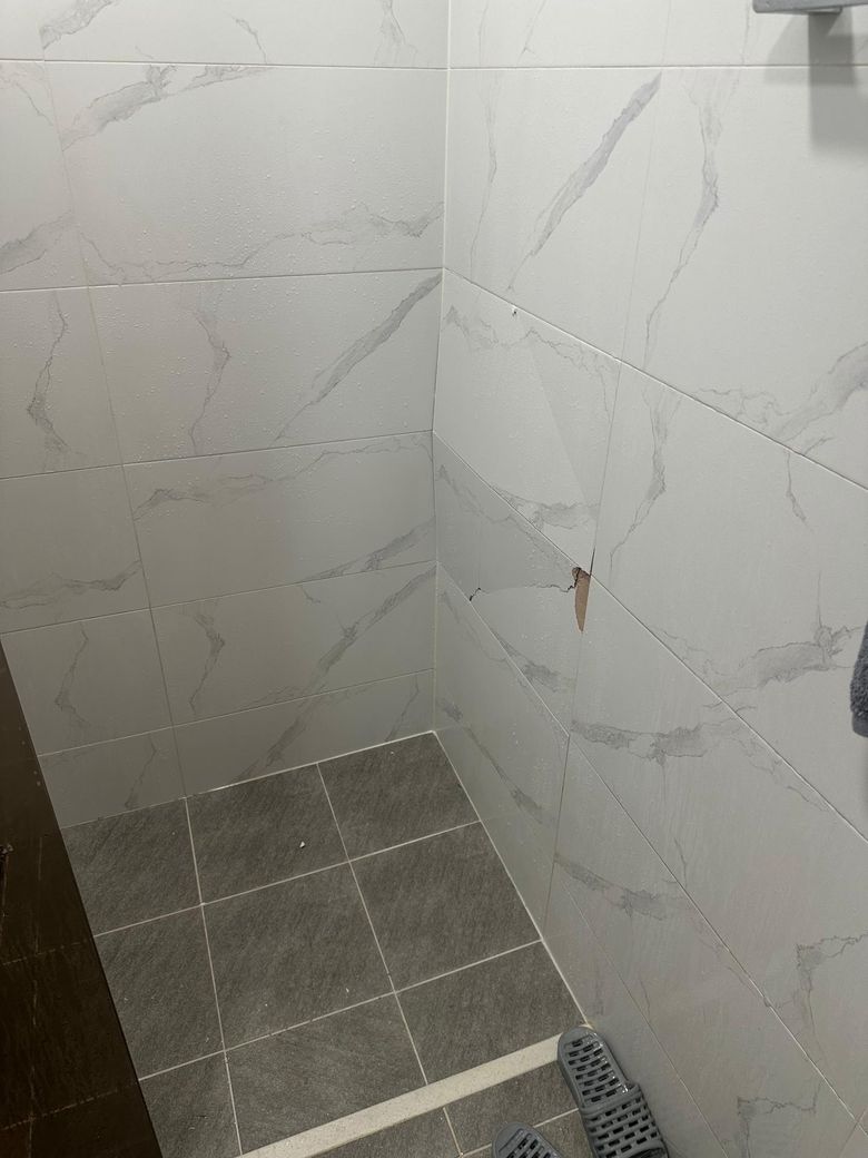 샤워하는 도중에 월세집 타일붕괴로 피해를 입었습니다