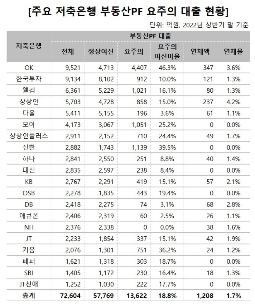 이에 따라, OK저축은행의 연체 PF들의 상세한 내역도 확인이 필요할 듯 합니다.