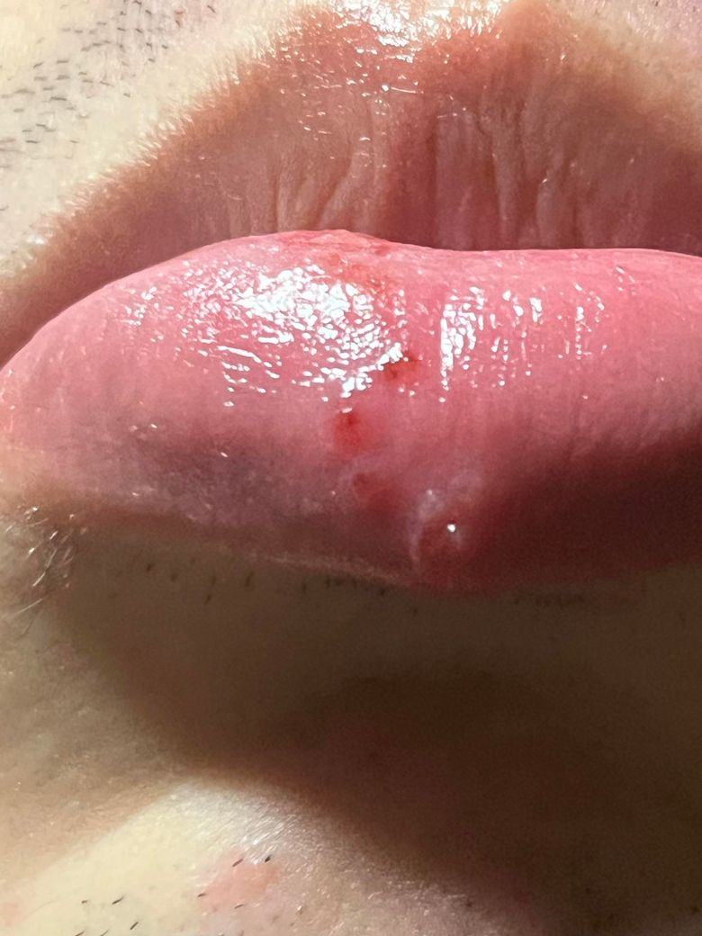 올려주신 사진으로 미루어 단순 포진의 가능성이 생각되므로 약국에서 아시클로버 연고를 사서 바르고 딱지가 생길 때까진 전파 가능성이 있으므로 점막 접촉을 피하고 공용 용품 사용은 피할 것을 권합니다.