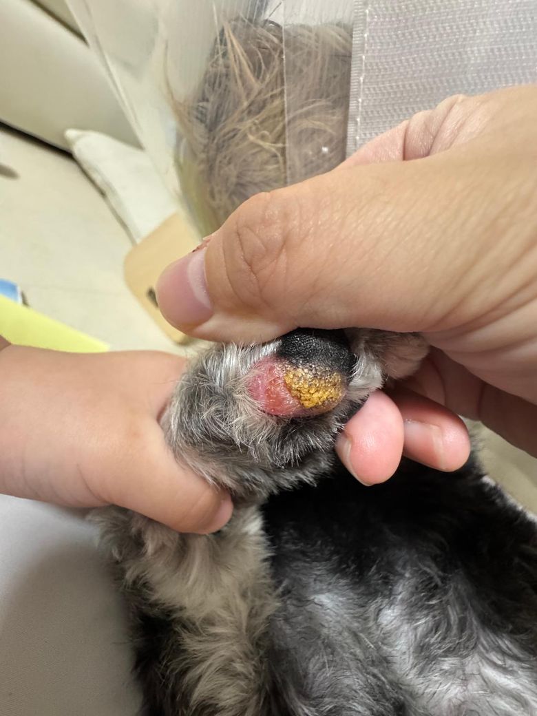 산책후 목욕중에 발견했는데 병원에서 염증이 생긴거 같다해서