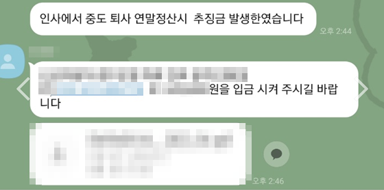 12월까지 다니고 퇴사를 하게된 회사에서 오늘 인사에서 중도 퇴사 연말정산시 추징금이 발생되었다며 생각보다 큰 금액을 입금하라 문자가 왔습니다.