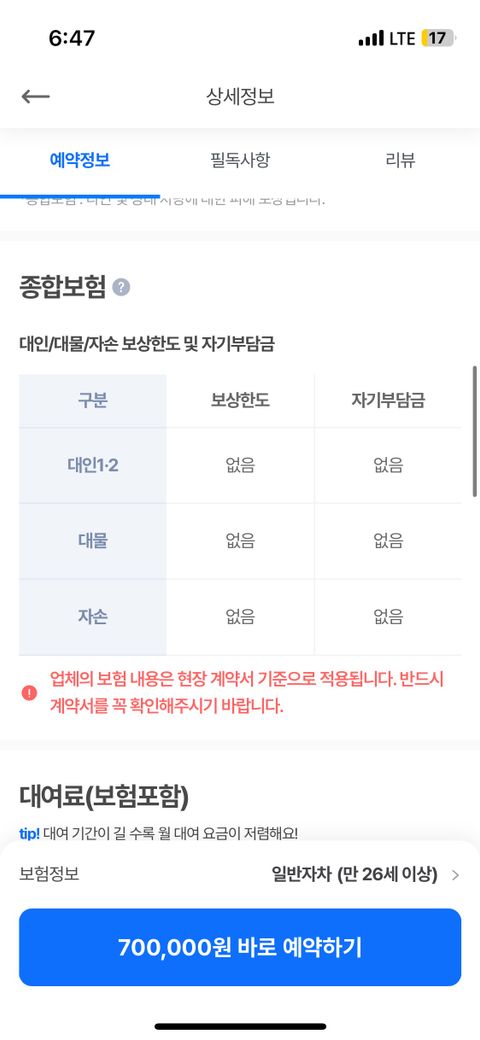 장기렌트 진행하려고하는데 보상한도가 없음으로 기재되어있습니다