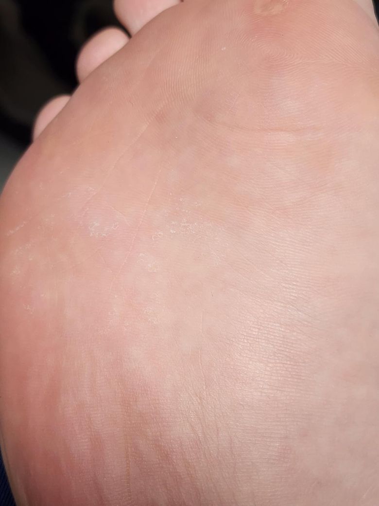 발 무좀(진균 감염)일 가능성이 있습니다. 무좀은 보통 가려움, 따가움, 갈라짐, 벗겨짐 등의 증상을 동반하며, 발가락 사이나 발바닥에서 자주 발생합니다. 치료 방법으로는 항진균제 연고(클로트리마졸, 테르비나핀)를 사용하여 감염된 부위에 꾸준히 발라주는 것이 효과적이죠. 또한, 발을 건조하게 유지하고, 습기 많은 환경을 피하며, 발에 통풍이 잘 되도록 관리하는 것이 중요하구요