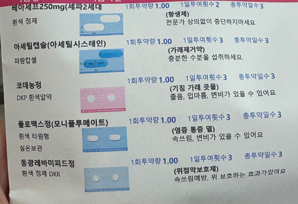항생제 베아세프250mg 처방받았는데 경구피임약 효과에 영향을 크게 미치는지 궁금합니다.