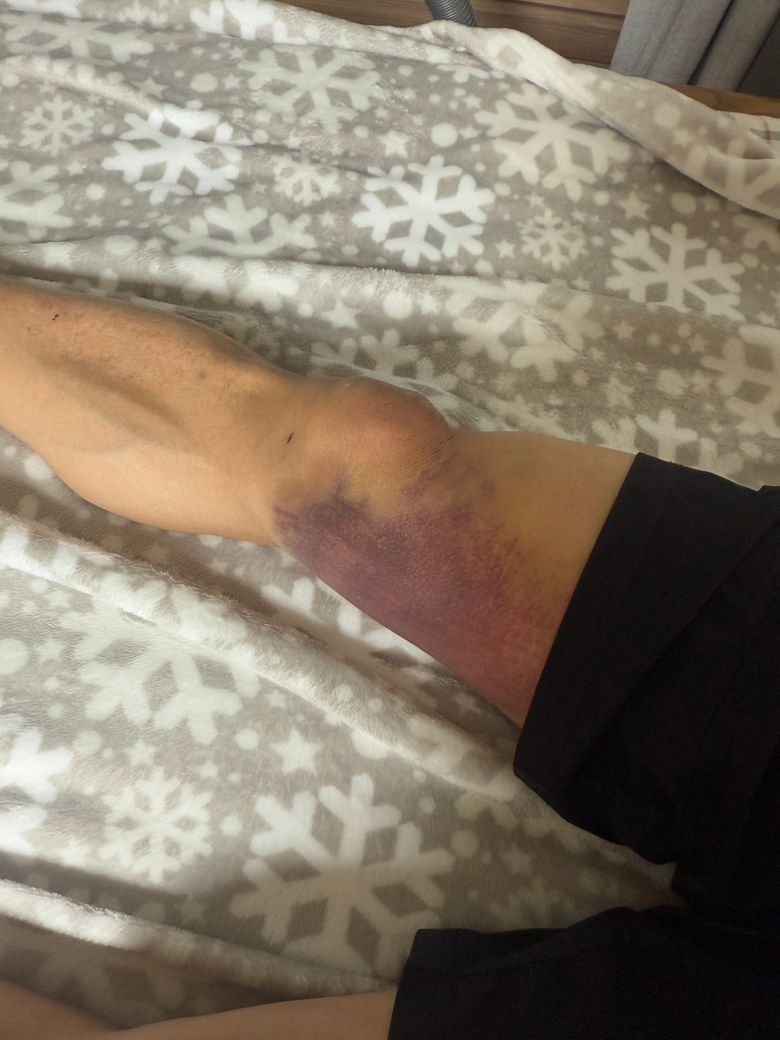 사진을 보았을 때, 광범위로 멍과 붓기가 발생한것으로 보입니다.