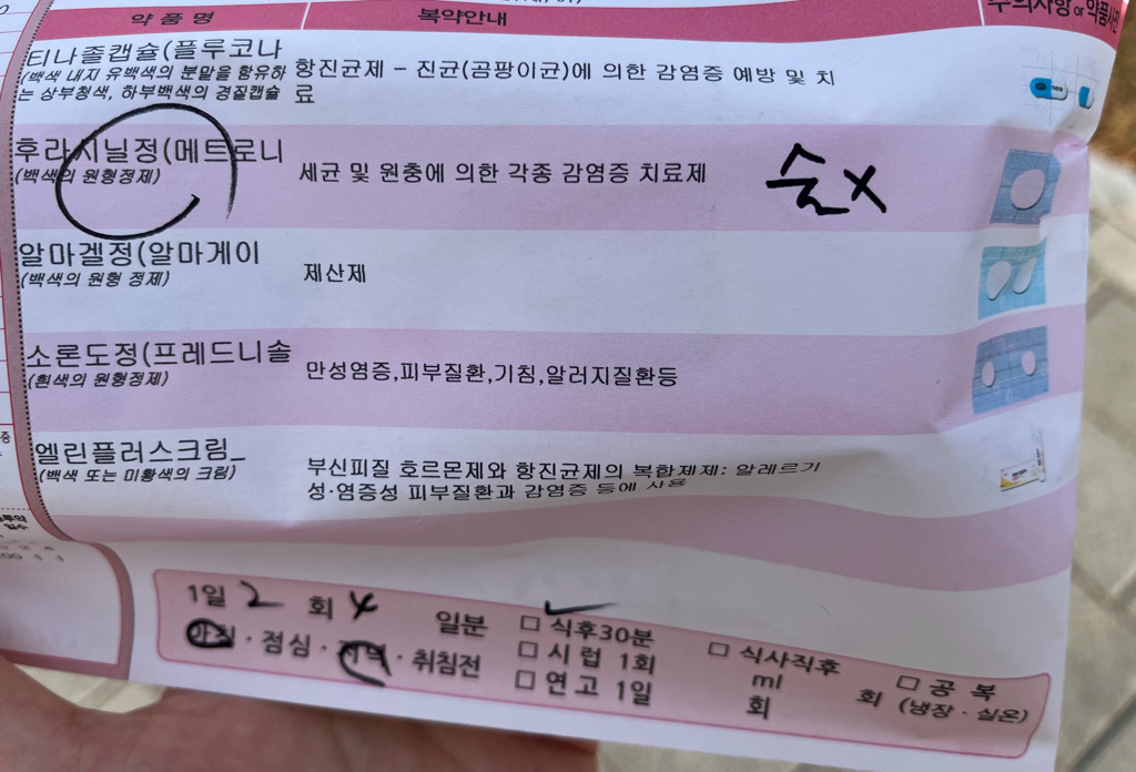 질염으로 받은 약입니다! 약사선생님이 항생제라고 술 먹으면 안 된다고 하셨어요. 혹시 피임약 복용중인데 같이 먹으면 안 되는 약이 있나요?