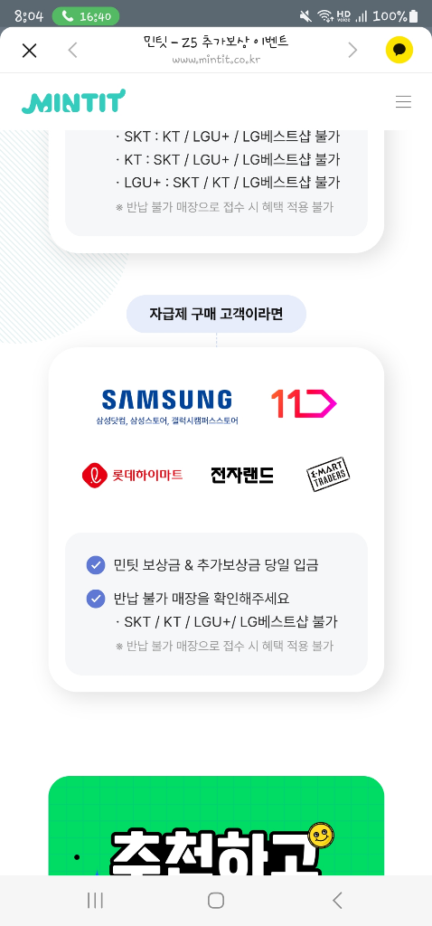 위사진대로 반납불가 통신사대리점 (세군대왜 베스트샵불가) 하고 삼성스토어에서 해야 추가보상을 받을수 있다는거죠?