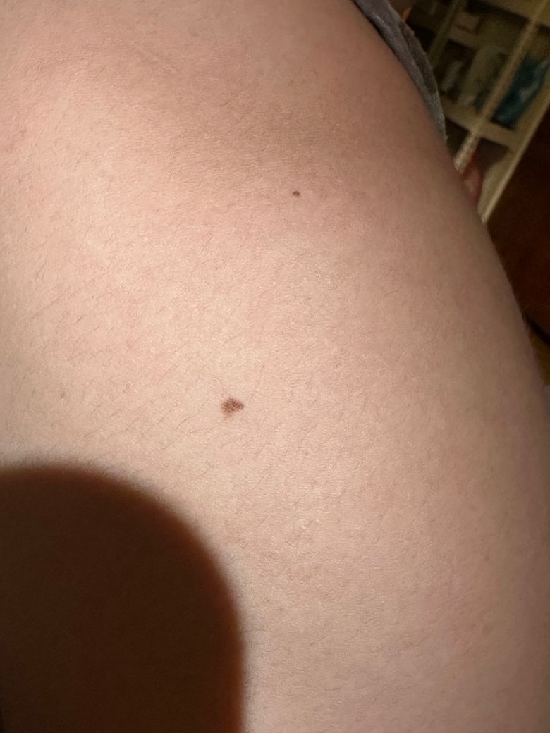 올여름 휴가때 바다에서 놀다가 일광화상 심하게 입었었는데 그 후에 팔쪽에 생긴 것같은 점입니다.