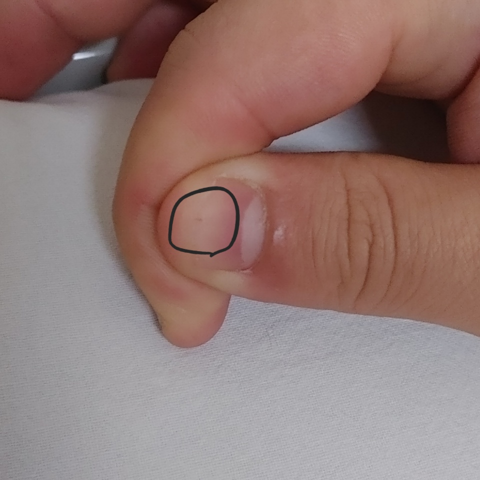 손톱끝에 뭐가묻은지알고 봤는데 양쪽 엄지손가락끝에 검은색 조그마한 선이생겼어요 뭔지 잘모르겠어서 문의드려요 흑색종 피부암 이런건아니겠죠..?