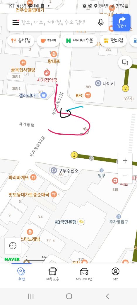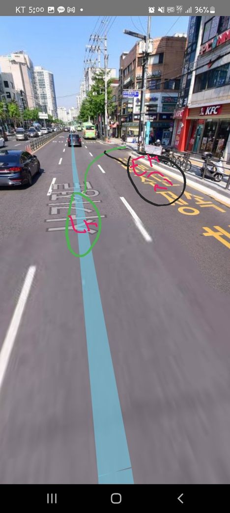 빨간색이 제 진출방향 파란색이 택시 진출방향 및 정차위치 검정색이 충돌지점 입니다.