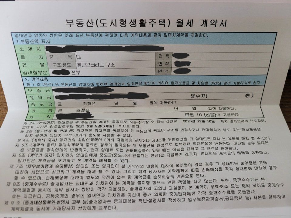 제가 며칠 전에 입주를 하게 되면서 받은 임대차계약서의 내용입니다.