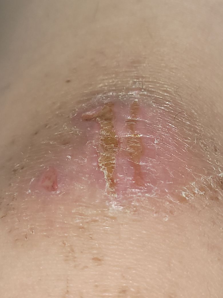 지난주 화요일에 자전거 타다가 넘어져서 그때부터 다음주 화요일까지 계속 메디폼 붙이고 있다가 밴드로 바꿨어요. 목요일부터 밴드를 때고 그냥 일상생활을 하고 있는데 주위에 살이 약간 건조해진 느낌을 어떻게 해결해야 하고, 상처는 세로로 살이 파인 부분에 딱지 같은게 있는데 흉이 질까요?