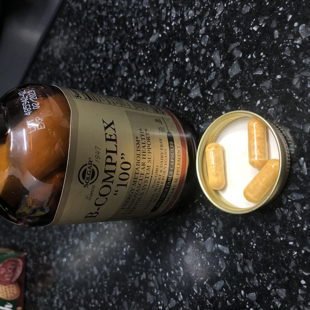 솔가 비타민B 컴플렉스 100 제품입니다. 맨 처음에는 정말 깨끗한 주황색이었으나 위 사진처럼 얼룩덜룩 해졌습니다.