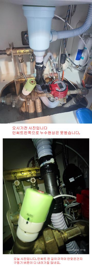 이분이 통화후 말도 없이, 또한 저에게 전혀 언급도 안했고 누수된사진도 안보여주고서는 인서트핀에서 누수가 있다고 임위로 복합정유량밸부에 있는 인서트 핀을 교체해버리고 갔습니다(핀도 길이가 원래있었던것보다 더 길어 왁수구동기의 내려가는 버튼이 완전히 내려가질 않는상태)를 하고 갔습니다.
