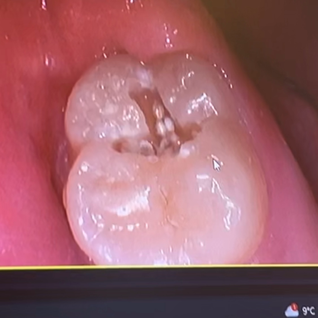 두 가지 가능성인데 1. 충치가 있는 상태에서 충치 제거를 완료하고, 떼우기 위해 모양을 만들어놓은 경우